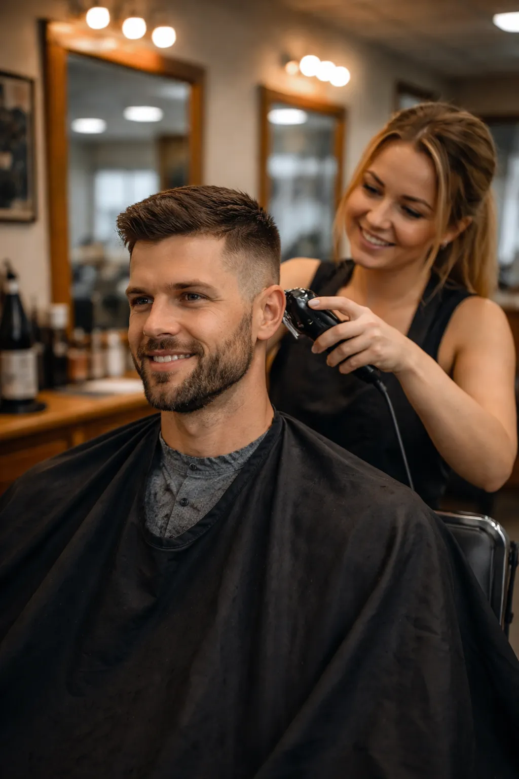 We offer men’s cuts, women’s cuts, kids cuts, beard trims, fades, grooming services, color, highlights, styling, and more.